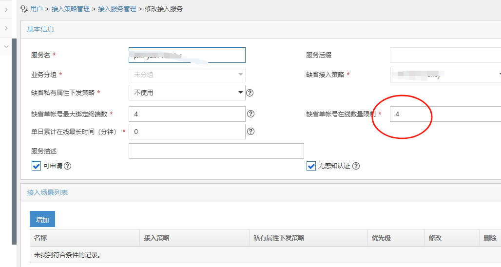 IMC接入服务里面的单账号在线数量限制为什么改了后,在用户里面点进去显示还是1,感觉是没有生效,还是说要单独一个一个用户修改?