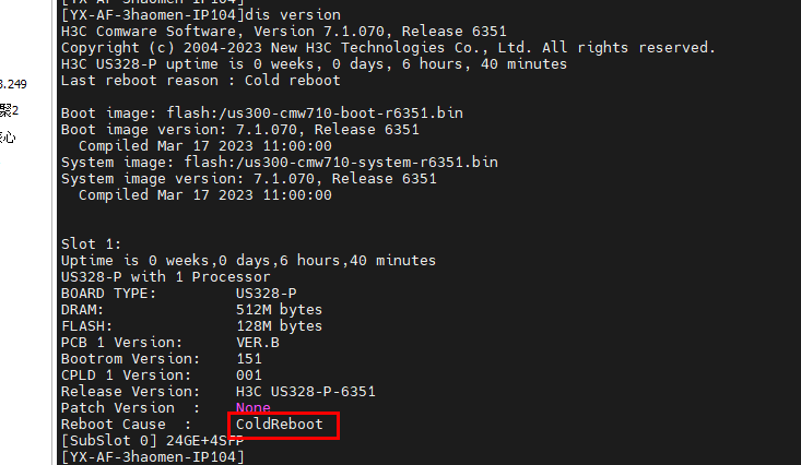 交换机一直重启通过dis version发现上一次启动为冷重启,有什么解决方法呢