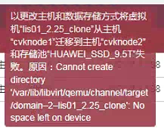 原因:Cannot create directory "/var/lib/libvirt/qemu/channel/target Idomain-1-lis01_2.25_clone:No space left on device