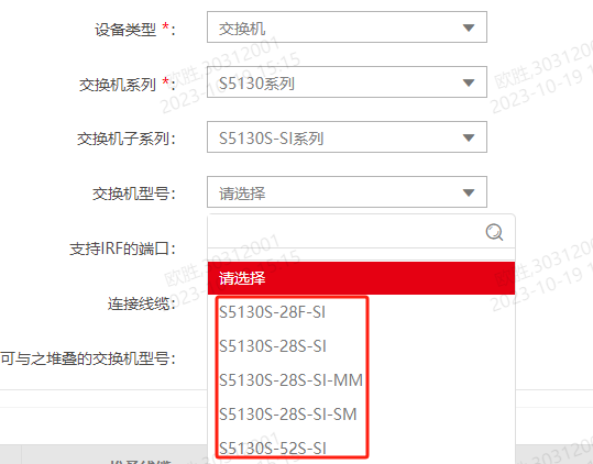 S5130S-HI、S3100V3-EI、S5130S-SI、S5120V2-SI、E500C、E500D系列交换机分别支持与同系列的机型组成IRF,不同系列的机型之间不支持组成IRF。