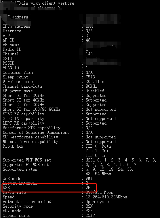客户端发送关联请求报文时,AP检测到的客户端的信号强度