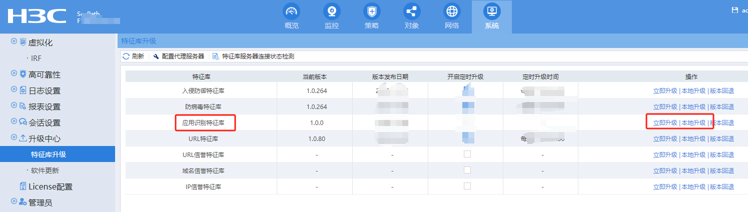 是华三防火墙所有系列的应用都本身不包含这三个应用吗,还是需要更新库,如果要更新如何更新