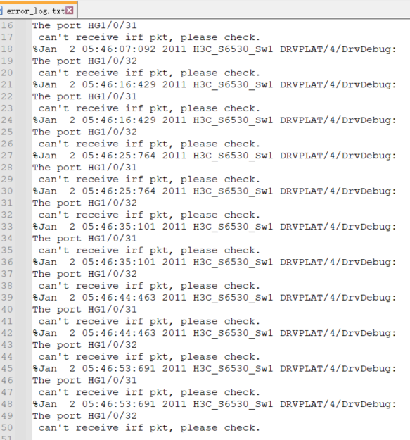 2、检查用于IRF堆叠的模块和线路是否有问题。