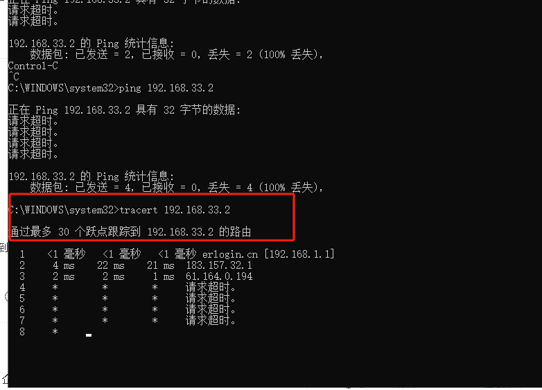 主路由er3208g3 网段192.168.1.1 二级路由gr-1200w网段192.168.33.1,现在是二级路由的网络可以访问主路由的网络,主路由的网络,访问不了二级路由的我现在在主路由上设置了静态路由,但还是不能访问。不知设置正确与否。设置如图