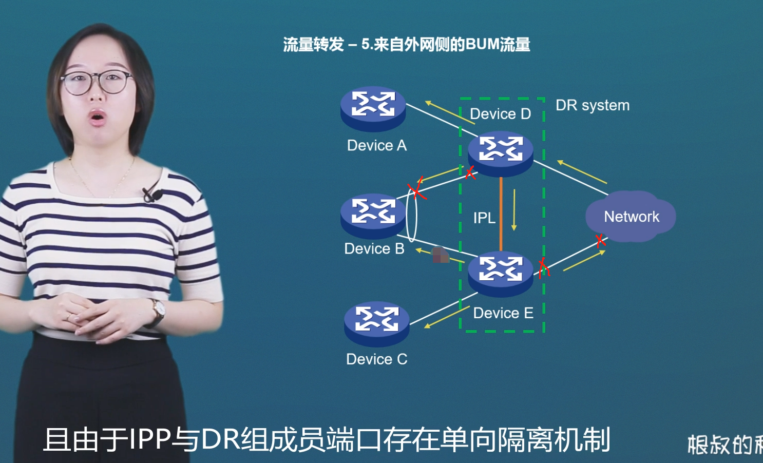 ipp端口和DR组成员存在单向隔离机制是指ipp收到得流量不在转发给DR组成员端口吗?