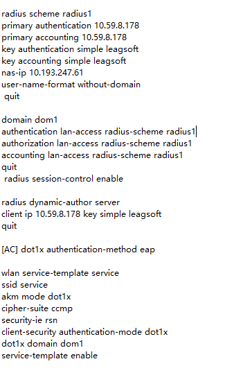 配置完之后,无法认证成功,是不是还少点什么,我记得配置portal认证的时候,无线还需要额外增加portal host-check enable,不然认证信息都到不了服务器上面,802.1X是不是也需要其他额外的配置呢?服务器那边说没有收到认证信息。