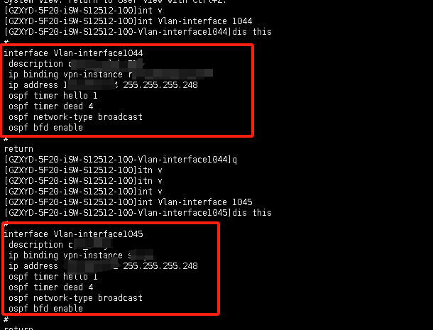 用户界面输入dis ip int b发现接口VLAN1045状态为DOWN,请问如何恢复为UP状态。