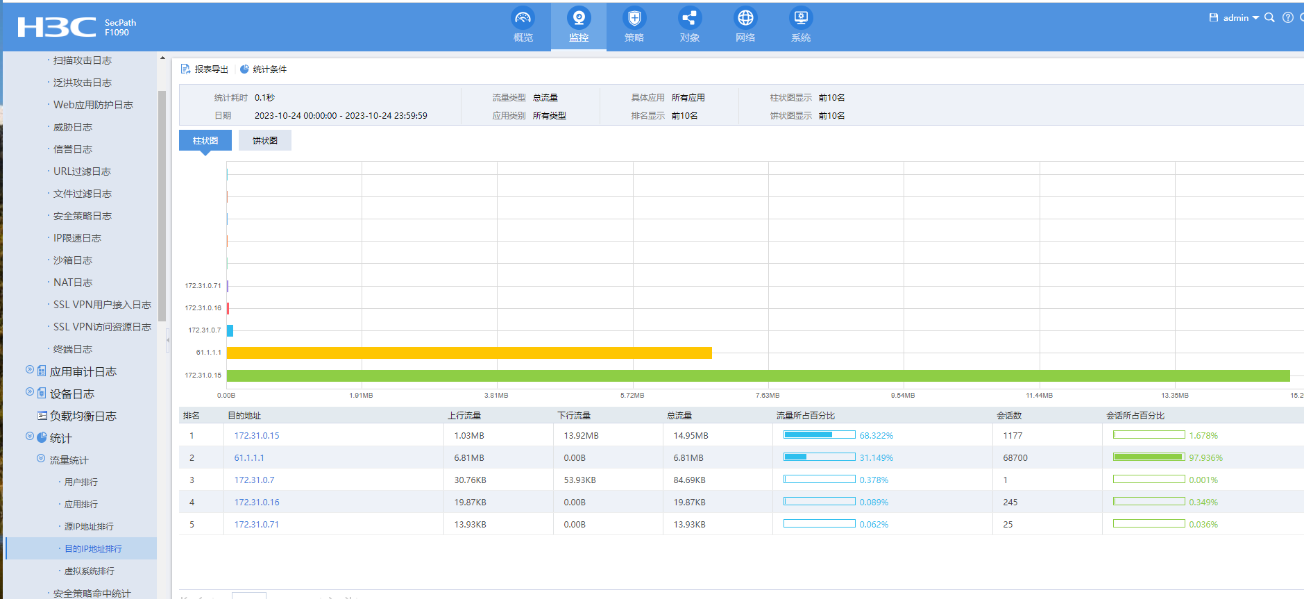能否统计NAT 端口映射的流量,比如映射了一个文件服务器出去,能看到这个映射实时的访问流量和某一段时间内的流量;客户出口带宽100m今天防火墙出口入方向的带宽占满了,还丢包;WEB流量统计里面上网的用户流量很小,没有大流量下载;怀疑是映射出去的服务器占满了带宽;web里面好像没有统计nat映射的流量
