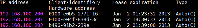 给服务器动态分配IP地址后,服务器更改为静态地址,然后查看dhcp分配的地址一开始分配的地址还在那里,