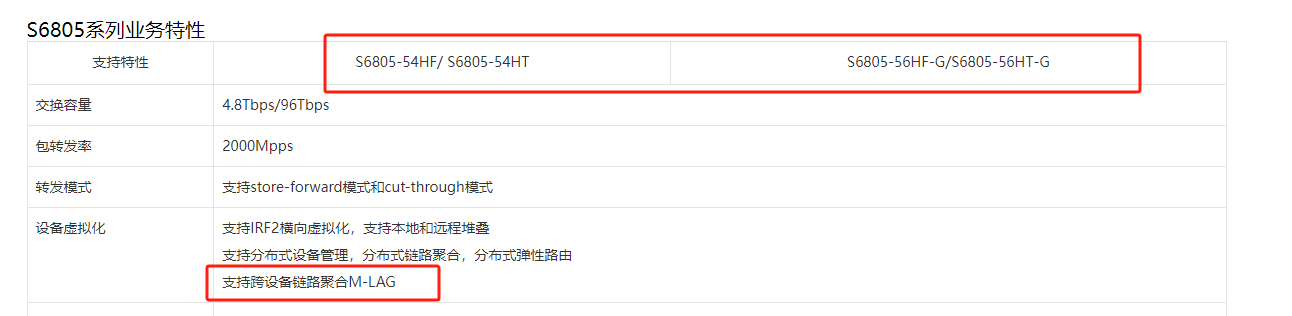 S6805支持M-LAG的。