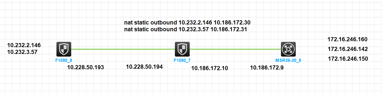 可以在中间防火墙的出接口配置两条nat static,实现对172.16.240.0的访问嘛