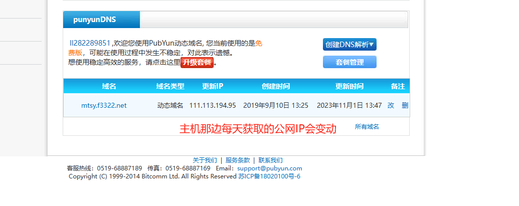 因为服务器这边不是专用,所以没有固定的公网IP,但是在PUBYUN上面做了DNS的域名转换,但是在这个界面填写域名的话作不了隧道连接,这个有什么办法吗?填写IP地址是可以正常连接的~