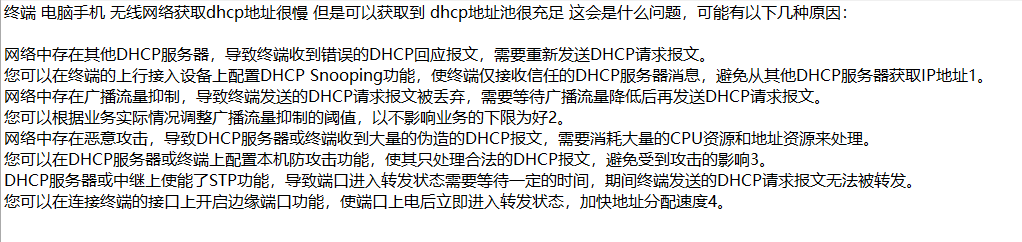 终端 电脑手机 无线网络获取dhcp地址很慢 但是可以获取到 dhcp地址池很充足 这会是什么问题