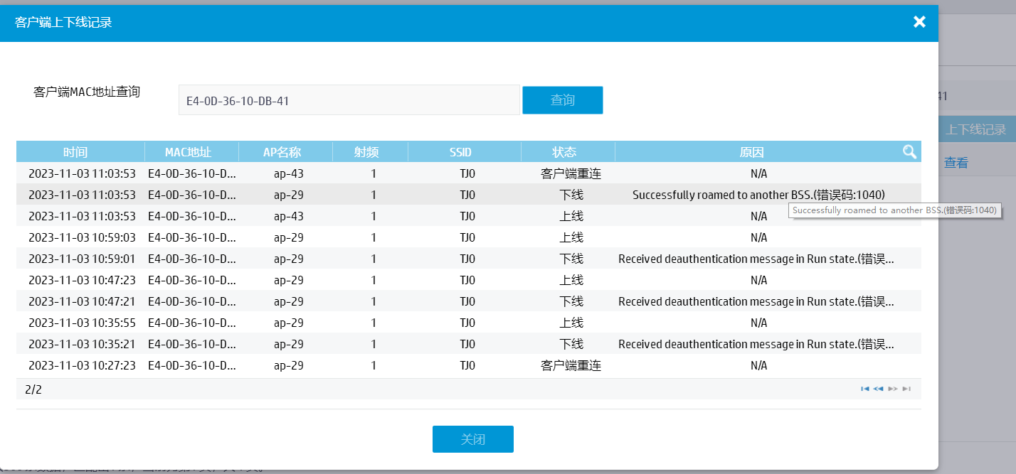 在AC本地做了MAC地址+密码认证登录,发现某些电脑出现反复掉线,连接上在线的情况下就会出现直接掉线 查看客户端掉线日志为 Received deauthentication message in Run state.(错误码:1025) 这种问题是什么原因和有什么解决办法的思路嘛?