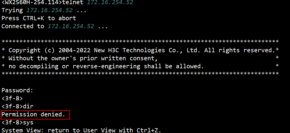 接console可能有点麻烦,因为是吊顶安装,最后迫不得已再考虑吧。远程看了成功上线的和未成功上线的,发现ap版本不一样,成功上线的是2453P01 不成功的是2458P03,远程到不成功的上面执行dir命令提示Permission denied.是什么情况