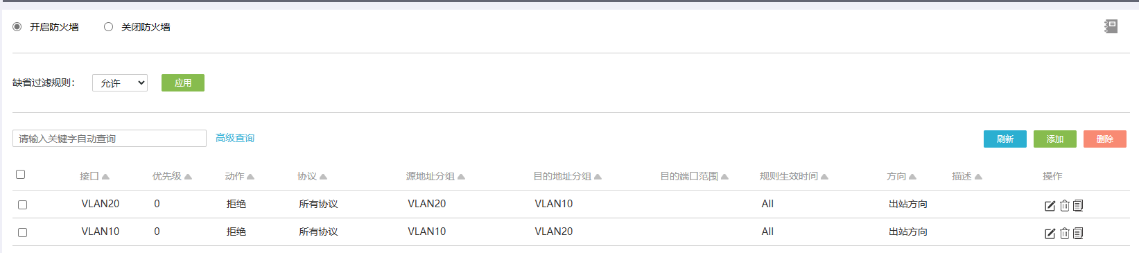 1、防火墙已设置拒绝VLAN互访,实际效果只是互访变卡、ping包丢失,仍然可以访问。