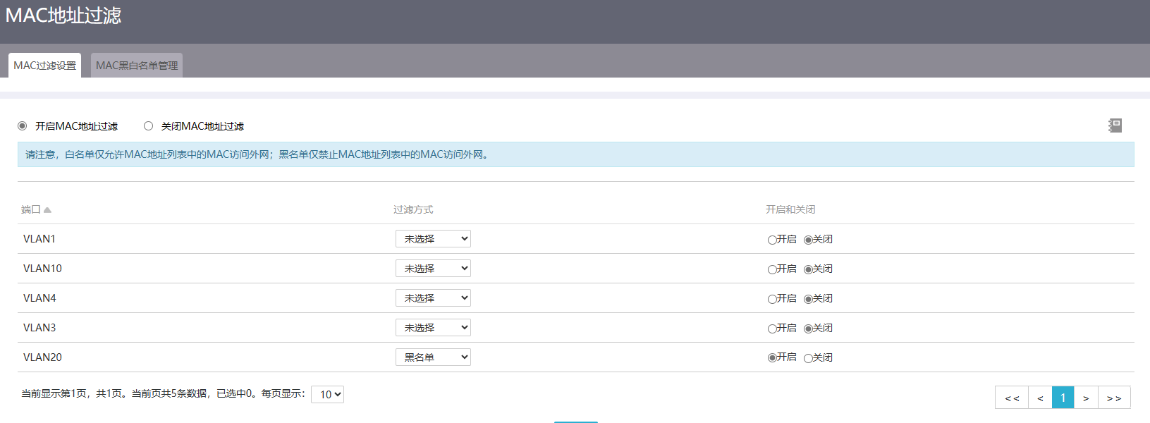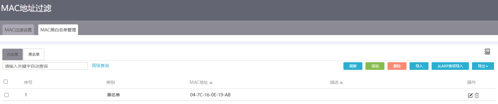 2、MAC地址过滤不生效,无论黑、白名单,相应设置后主机仍然可以正常访问外网。