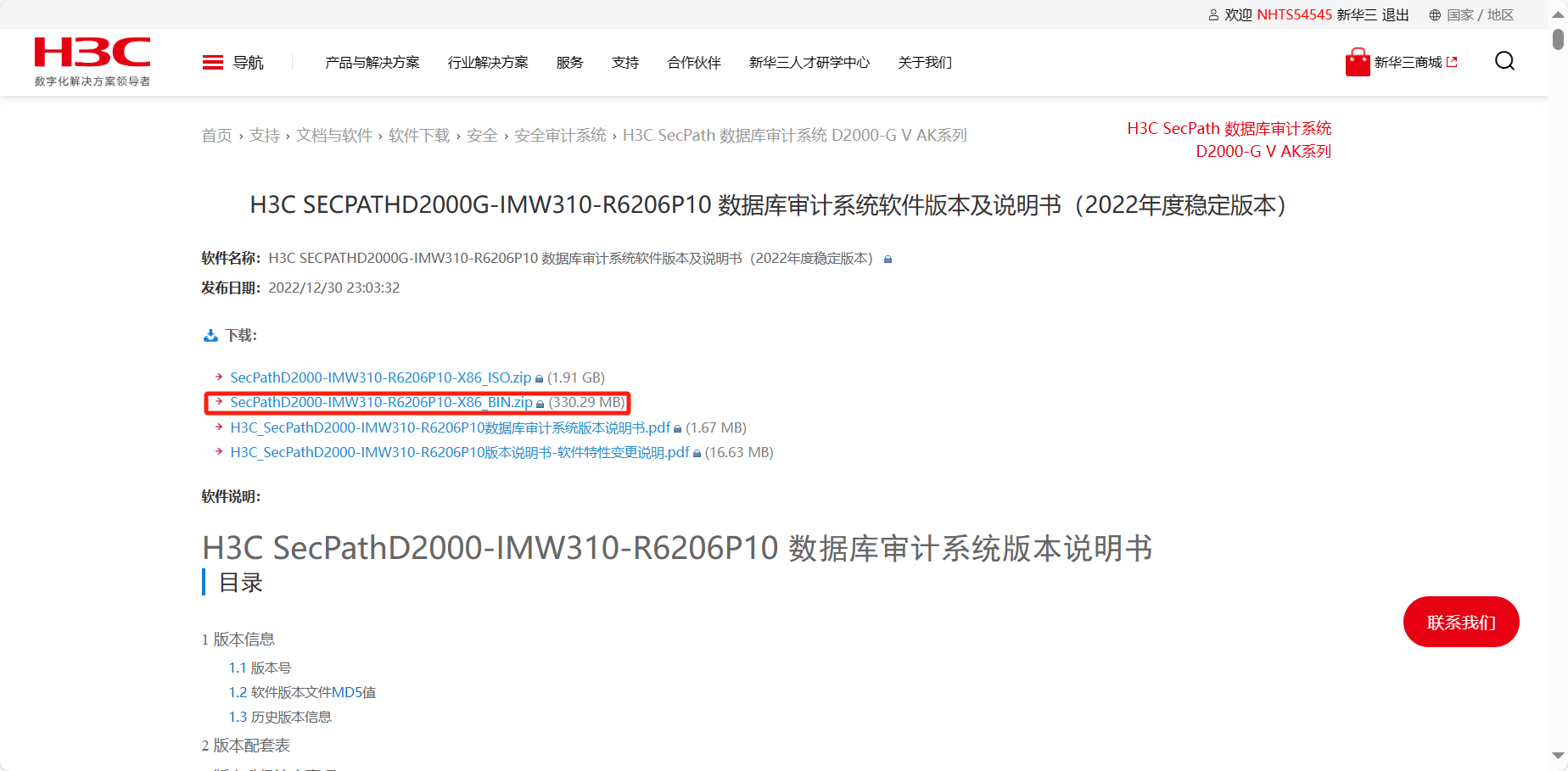 你这个应该是D2000-G2系列的数据库审计系统,你下载的链接是D2000-G的,不适配。目前H3C官网好像没有D2000-G2的软件升级包,可能你现在设备上就是最新的软件版本,建议可以咨询一下销售设备给你的经销商工程师看一下。