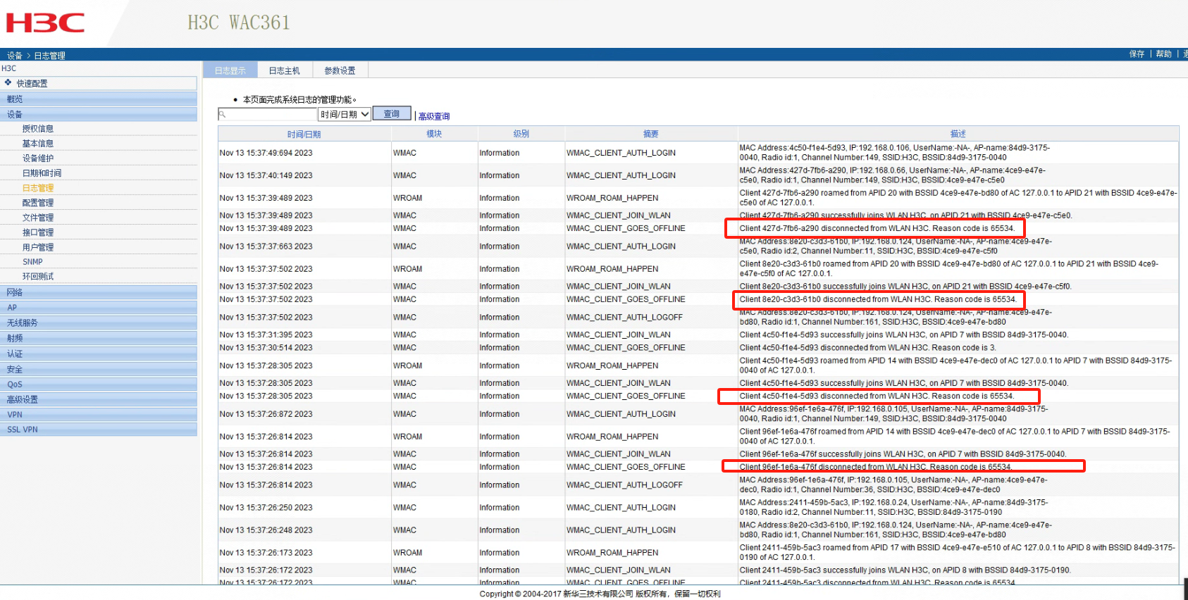 查看日志是Reason code 4(空闲超时掉线或都没有收到assoc response的ACK)还有code 65534 ,大约几分钟就会出现断开重连的状况,有什么解决办法吗