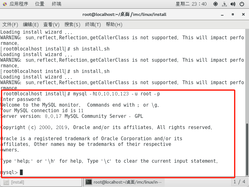centos7安装imce0706 连接数据库失败,命令行视图能正常进到远程数据库的命令行页面