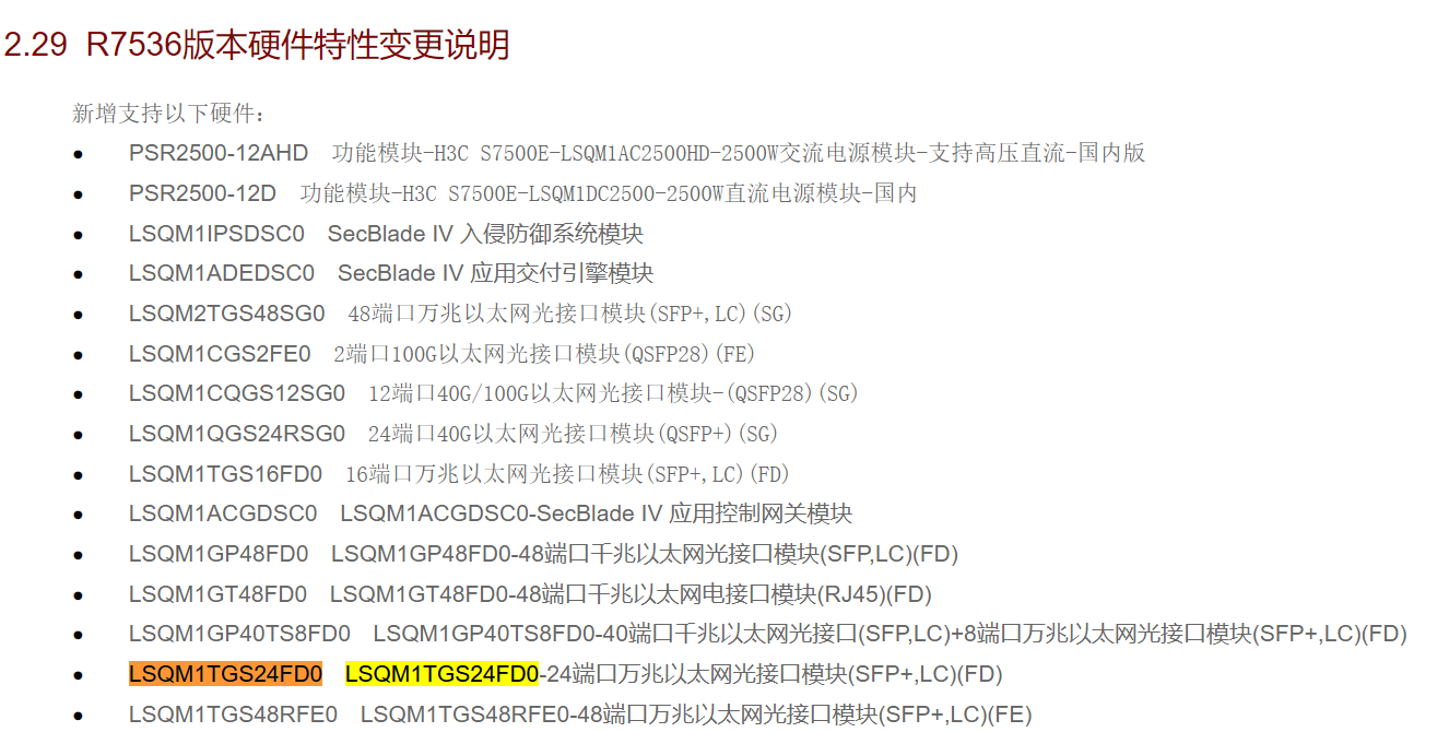 H3C S7503E设备上使用LSQM1TGS24FD0这个型号板卡的最低支持的软件版本是Comware V7 R7501P01或者R7501P021。您可以参考H3C的官方文档2了解更多细节。