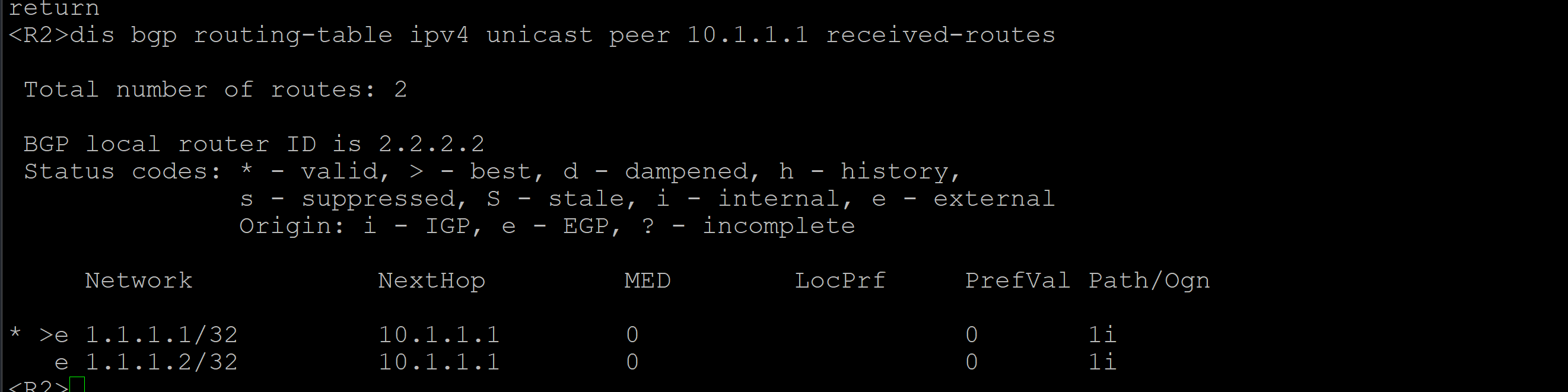 peer 10.1.1.2 as-number 2