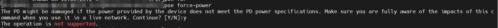 问题:网线超过100米。部分同远端AP连接线缆指示灯不亮,要开启强制供电报The operation is not supported