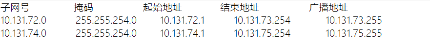 你这边network 10.131.73.0 255.255.254.0 是从72.0开始的,