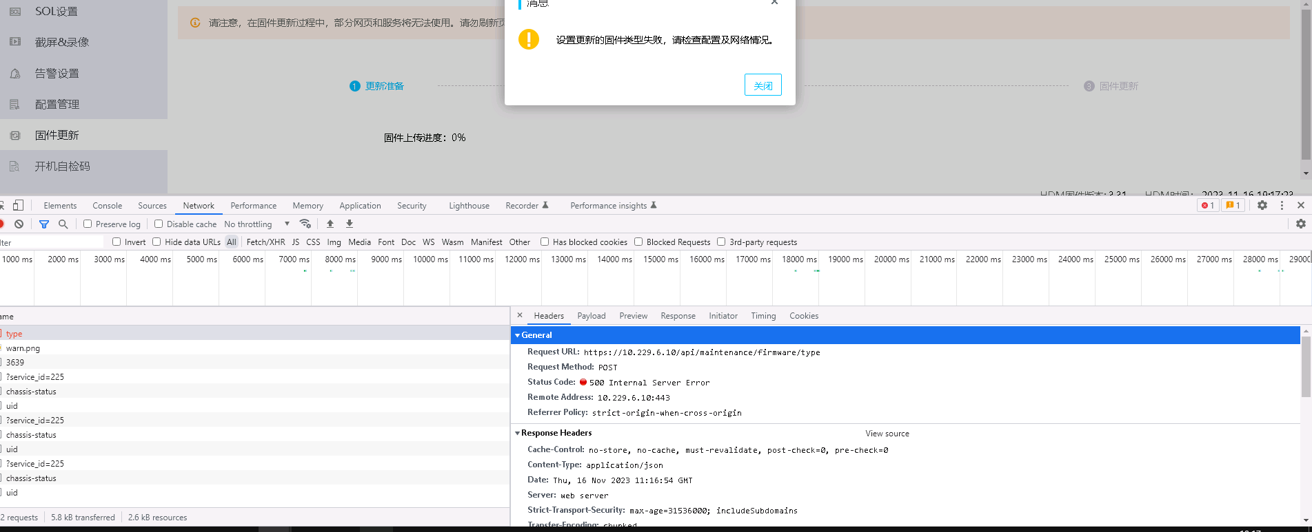 升级过程中,HDM由1.11.35P06版本升级到HDM-v1.30.32版本再升级到HDM-v3.31版本后,BIOS需要由1.00.44升级到BIOS-2.00.63P10版本。BIOS升级上传固件报错,“设置更新的固件类型失败,请检查配置及网络情况”!。这种是什么情况导致的?后面固件版本文件又上传成功了,但是升级过程报错,“开始更新固件的命令失败”。一键收集HDM日志,自动退出页面报401。麻烦各位帮忙看看。
