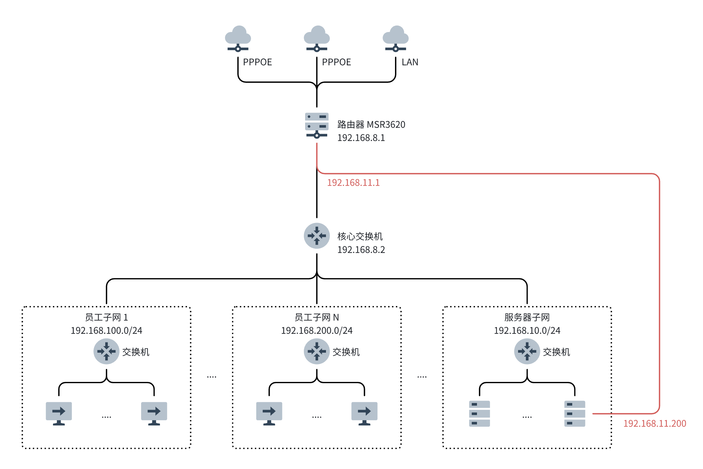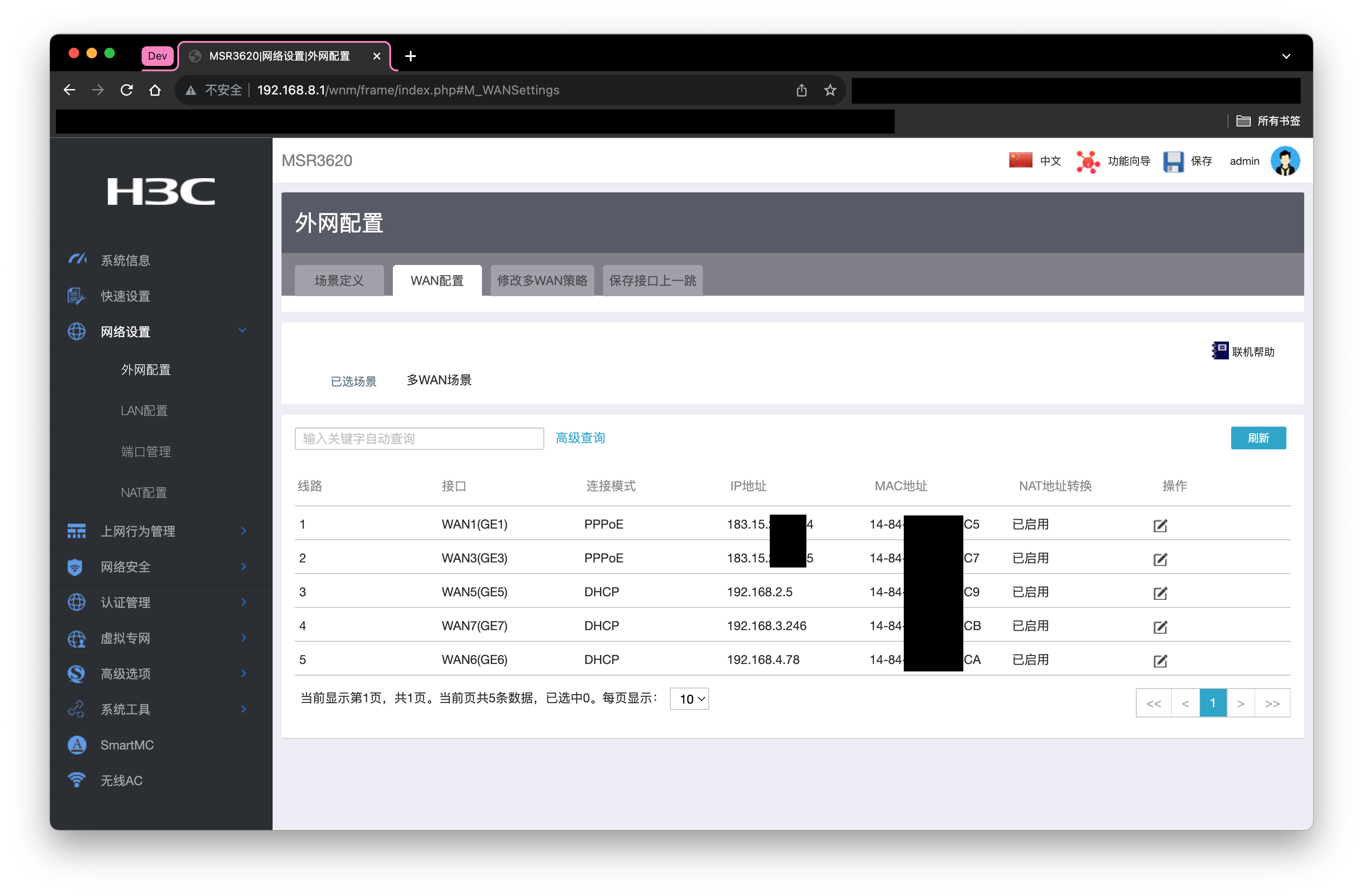 大致就是,我们公司拉了五条宽带使用,有两条是 PPPOE 拨号并且有外网 IP;