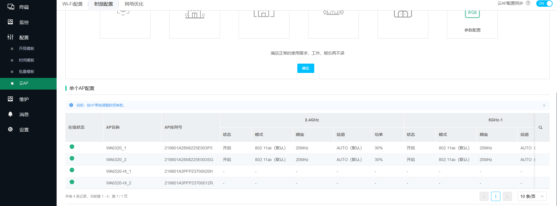 如下图,WA6520-HI在云简网络上管理后不现实射频配置信息,也无法编辑射频配置,对比WA6320没有这个问题,求解答。