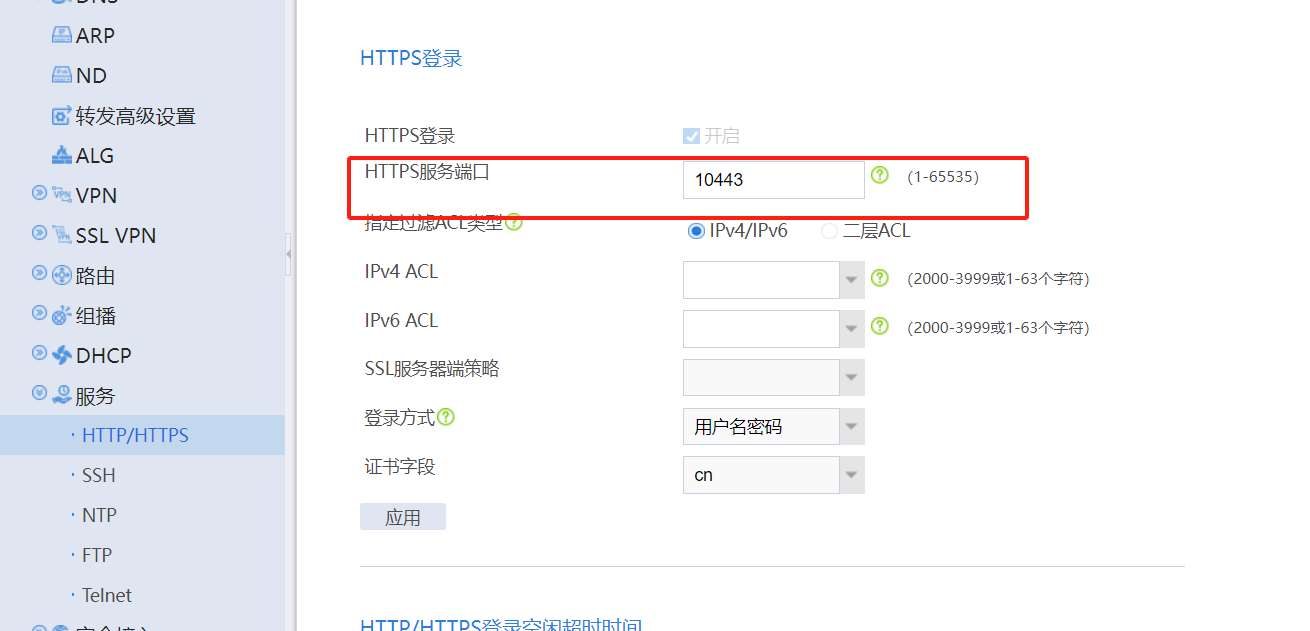 #在HTTP/HTTPS服务中调用,点击“网络”>“服务”>“HTTP/HTTPS”,选择刚配置的ACL2999,点击应用即可。