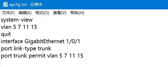 [WAP722S]interface WLAN-Radio 1/0/2 // WLAN-Radio 1/0/2代表2.4G,WLAN-Radio 1/0/1代表5G,用户据实际情况选择绑定