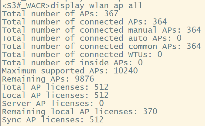 display wlan ap all 中的Local AP licenses包含Sync AP licenses吗。