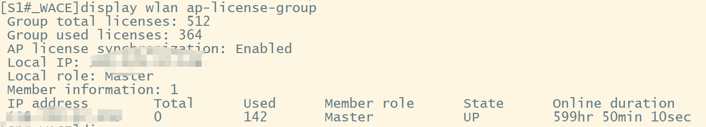两台ac上做了授权共享,Local AP licenses都显示512。display liencese S3好像没有打license。现在显示S1上display wlan ap-license-group显示S3上为0。是不是我现在两台ac都共用一个512个ap的授权