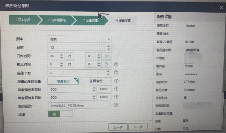 局点设置为每月12号自动全量备份,以及每日增量备份。