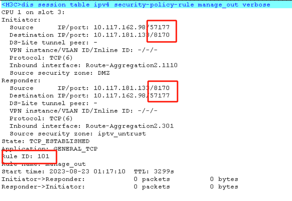 防火墙区域策略配置完成后,通过查看防火墙会话信息,发现命中该条策略的端口号并不是我放通端口号。谁能帮忙看下是什么问题。
