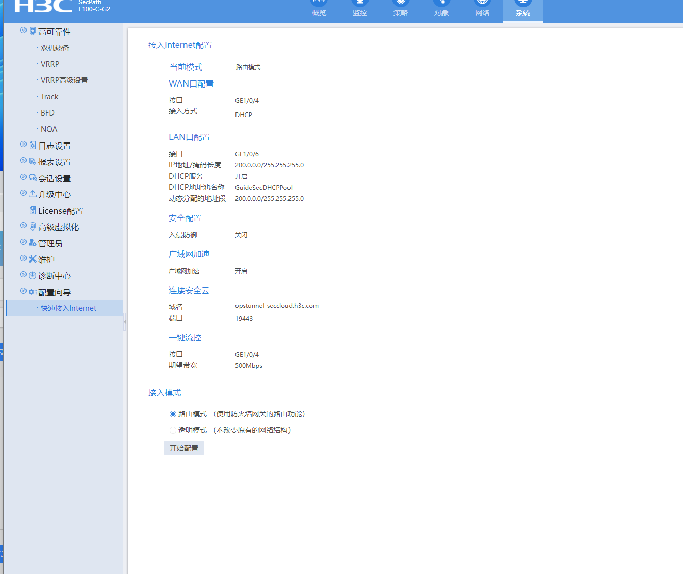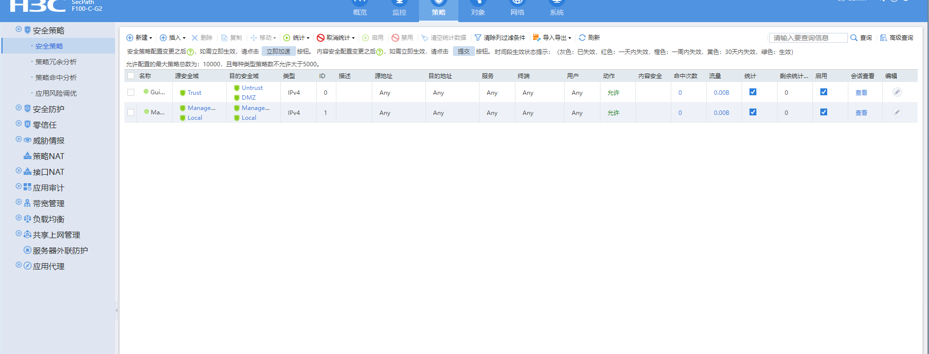 没有修改过其他的配置,只配置了一个快速向导和添加了一条 Management到Local 的安全策略