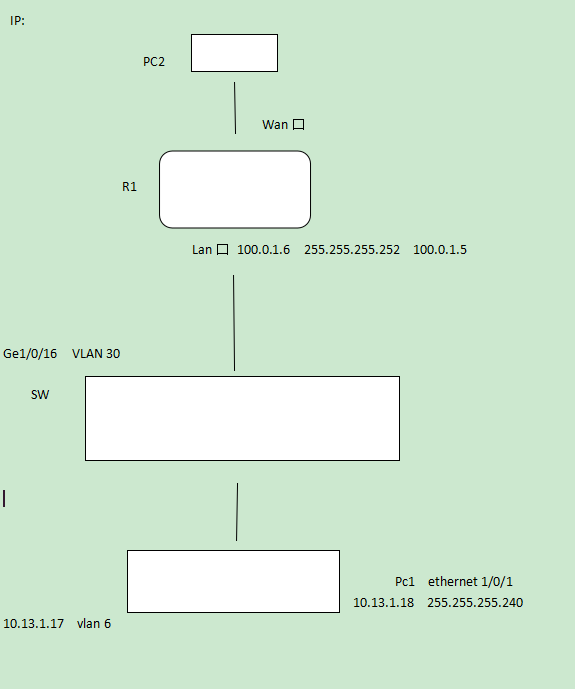 本地PC 用户地址为10.13.1.18 255.255.255.240 10.13.1.17