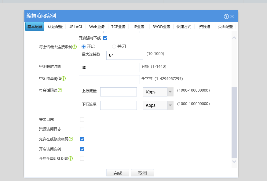 (6) 开启IP接入连接关闭的日志生成功能。