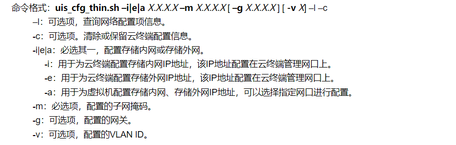 [root@cvknode ~]#uis_cfg_thin.sh –i 10.10.10.97 –m 255.255.255.0 存储内网