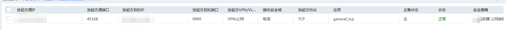 查看会话有记录(公网ip+端口,显示连接已重置。)