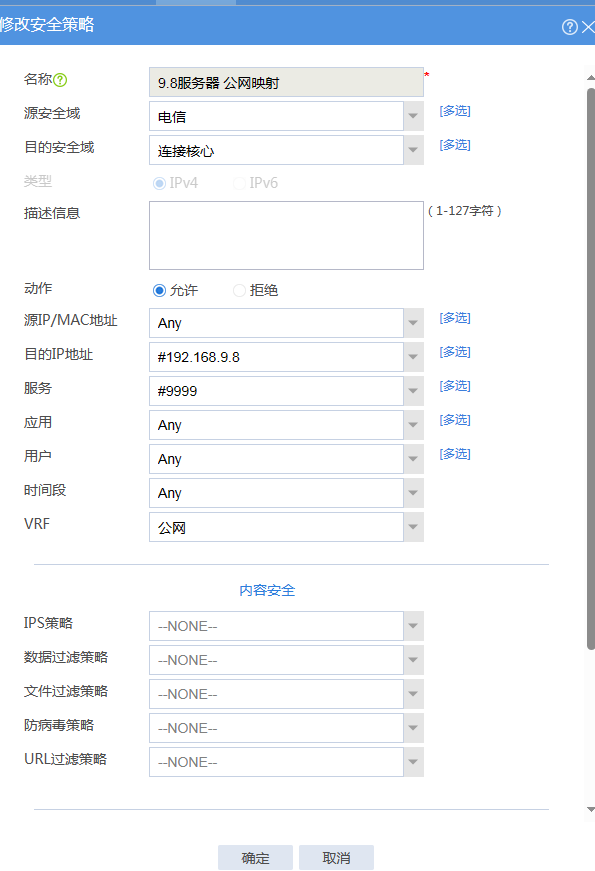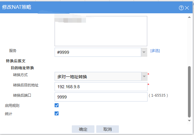 3.官网手册要做NAT 动态转换,我直接做了全局NAT 策略(动态转换貌似不命中),贴图