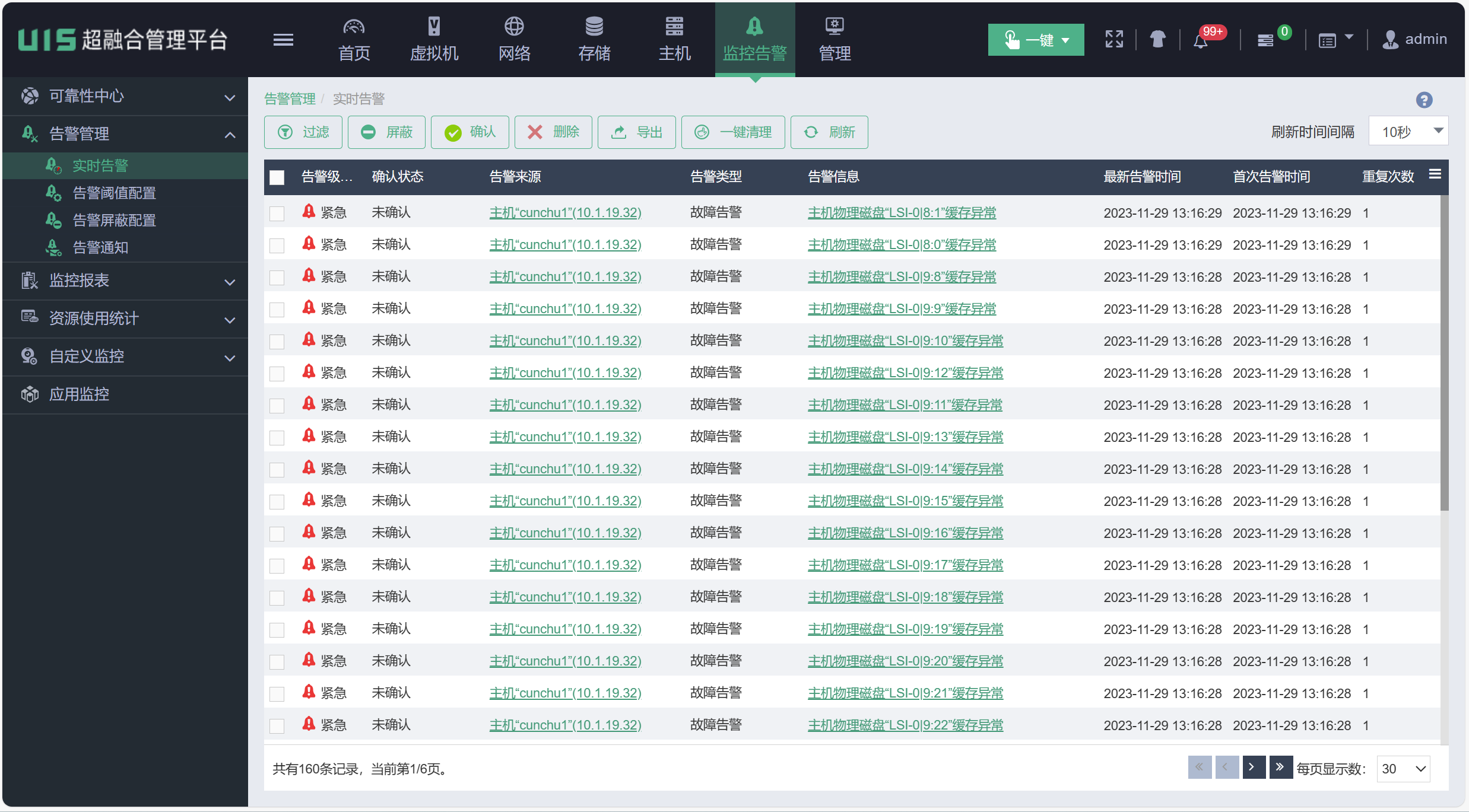 UIS超融合完成初始化后有很多的磁盘缓存异常报错,是因为主机RAID配置的物理硬盘缓存策略的原因吗?