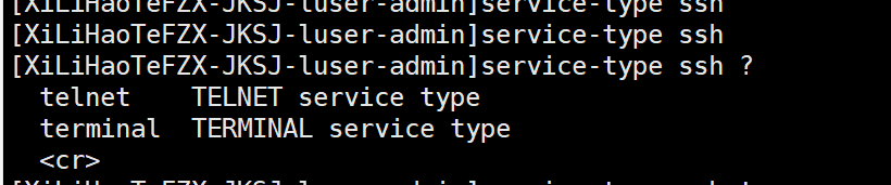 [J-luser-admin]service-type ssh ? telnet TELNET service type terminal TERMINAL service type