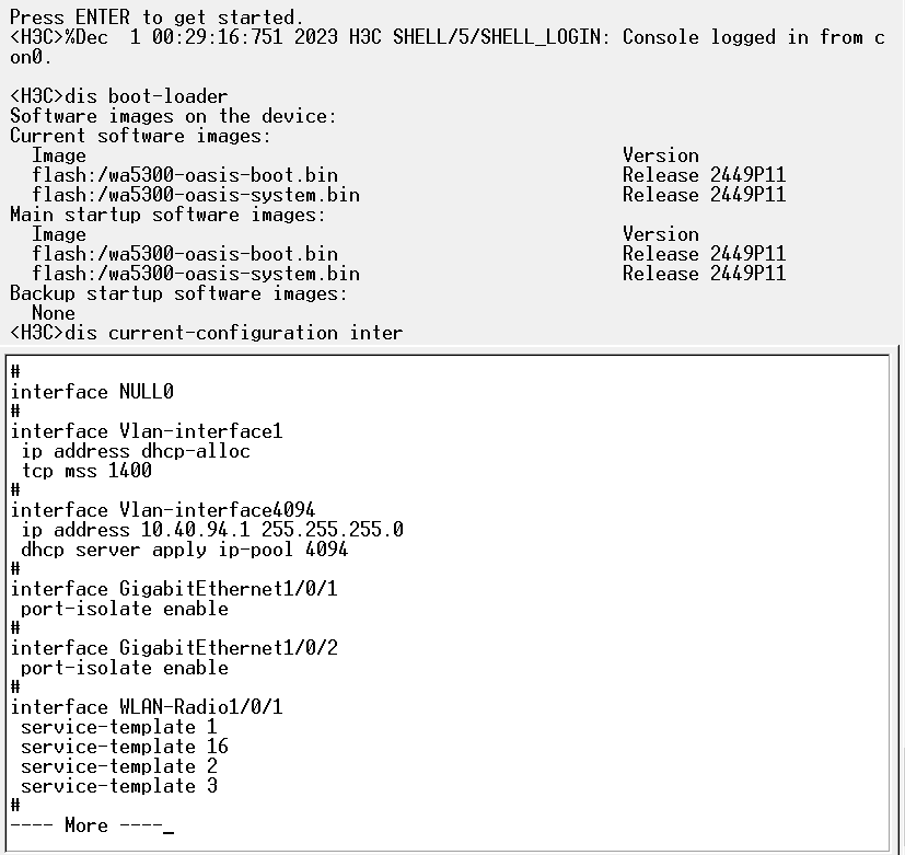 <H3C>display vlan Total VLANs: 2 The VLANs include: 1(default), 4094