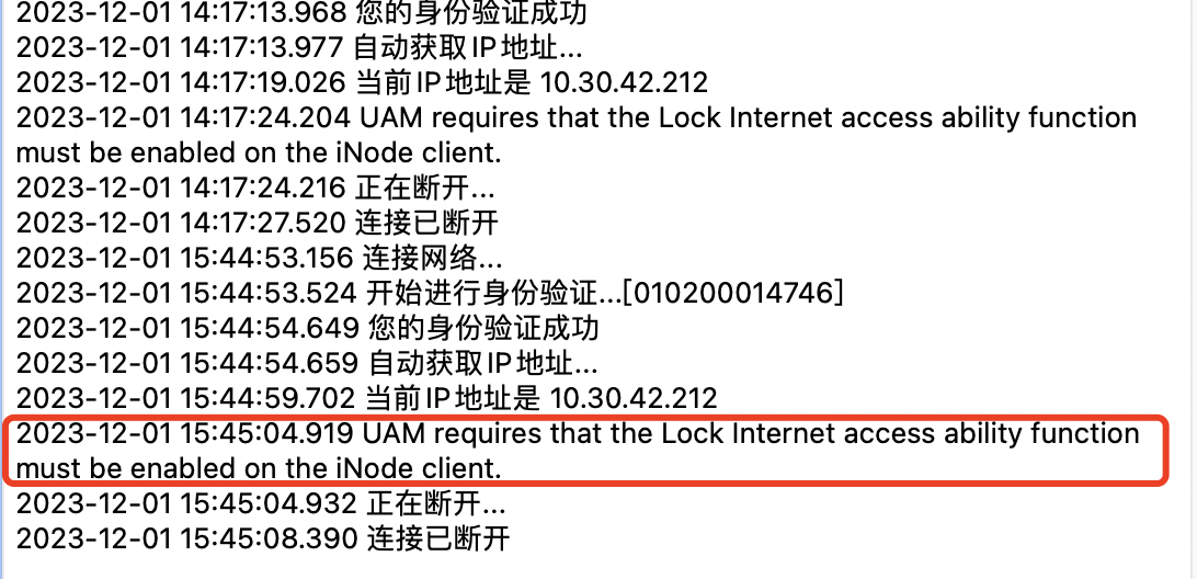 Mac最新版inode出现这种情况,翻译了一下是:UAM要求必须在iNode客户端上启用Lock lnternet访问功能。如何解决这个问题呢