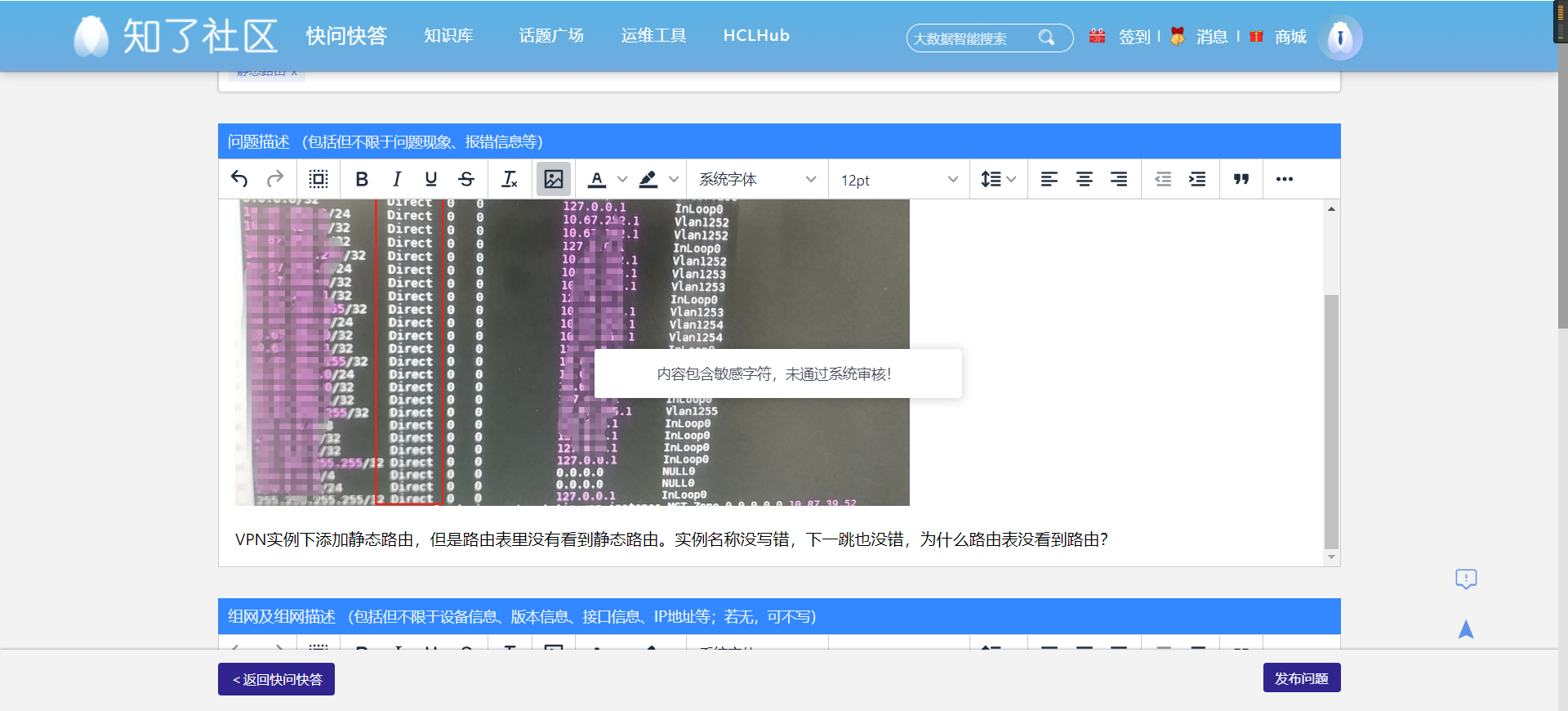 VPN实例下添加静态路由,但是路由表里没有看到静态路由。实例名称没写错,下一跳也没错,为什么路由表没看到路由?