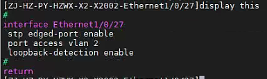 s3100交换机的27口开启了边缘端口,全局开启了BPDU保护,华为路由器的接口是2层模式,开启了生成树发送的BPDU触发了S3100交换机的BPDU保护性关闭。