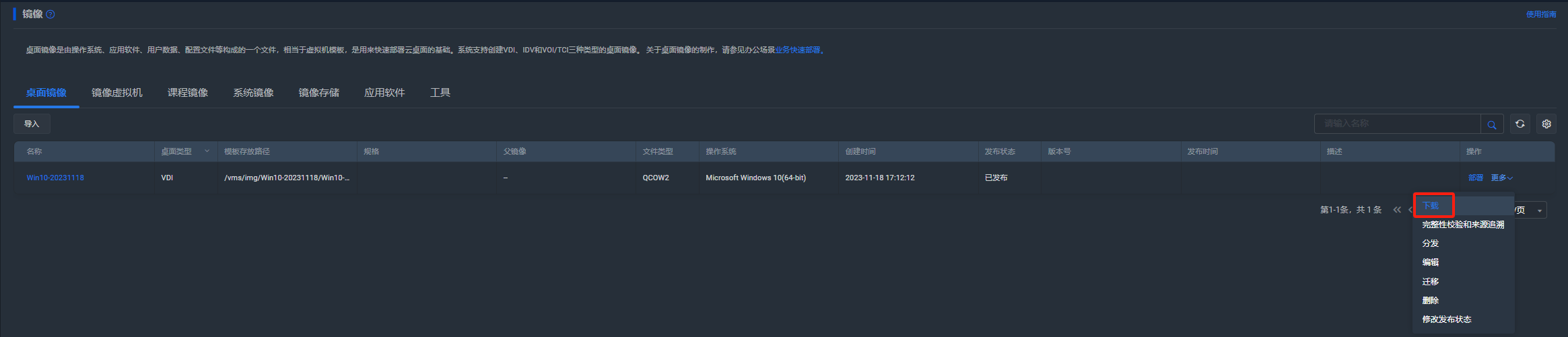 找到桌面镜像 更多-下载 在新的环境 导入就行
